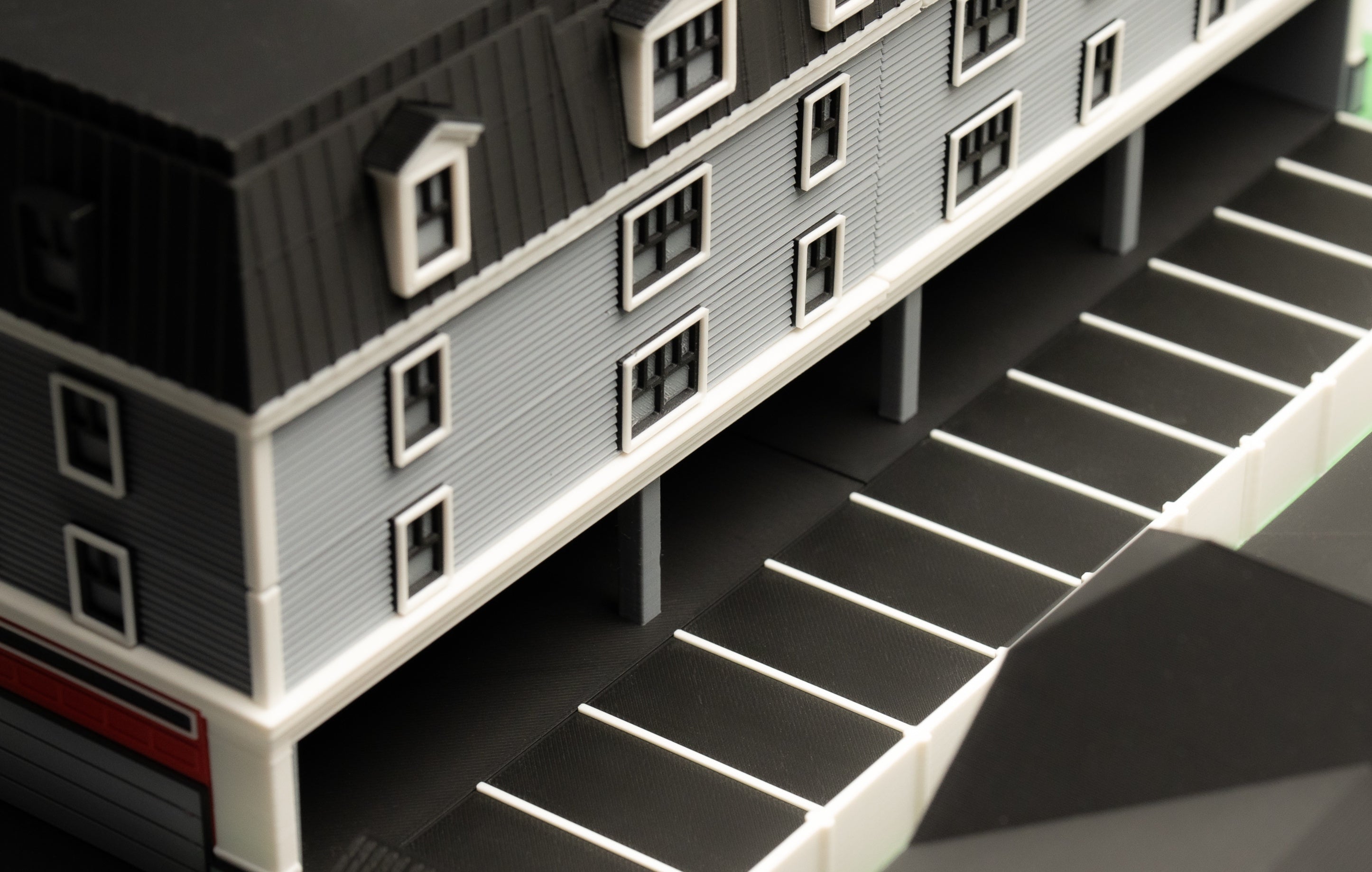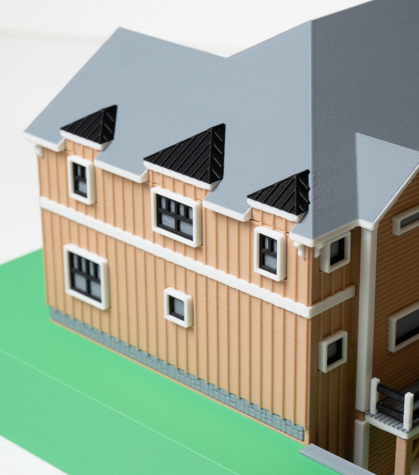 We have painstakingly designed a proprietary system of print tolerances and techniques, with a variety of filaments to produce realistic construction materials from wood to masonry to metal.