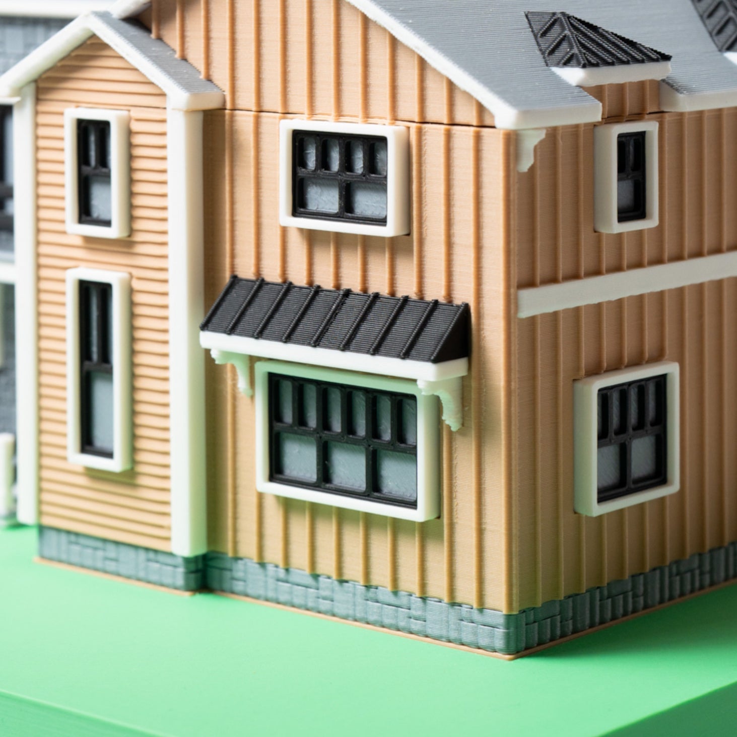 We have painstakingly designed a proprietary system of print tolerances and techniques, with a variety of filaments to produce realistic construction materials from wood to masonry to metal.
